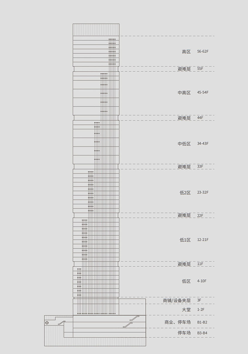 電梯系統(tǒng):25部客梯、2部消防梯、進(jìn)口三菱電梯、智能派梯、最高提速可達(dá)8m/s、平均等待時(shí)間小于30s