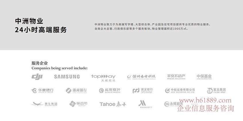 中洲物業(yè):24小時(shí)高端服務(wù)、中洲物業(yè)致力于為高端寫字樓、大型綜合體、產(chǎn)業(yè)園及住宅項(xiàng)目提供專業(yè)優(yōu)質(zhì)的物業(yè)服務(wù)、含商企大總管、行政俱樂(lè)部等多個(gè)服務(wù)板塊,物業(yè)管理面積近 1 0 0 0 萬(wàn)㎡
