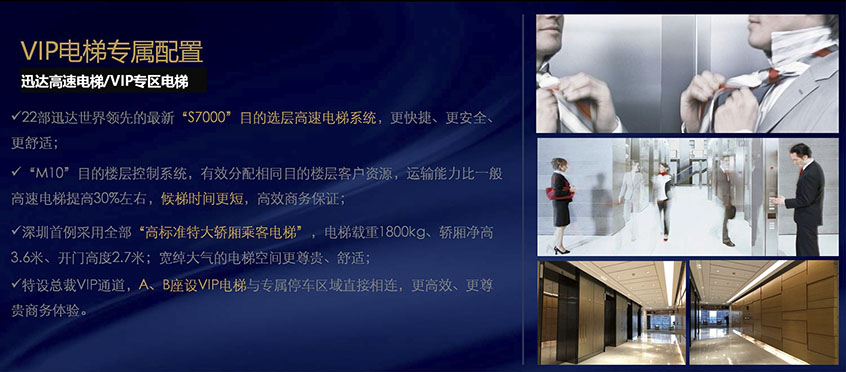 特設總裁VIP通道,A、B座設VIP電梯與專屬停車區(qū)域直接相連,更高效、更尊 貴商務體驗