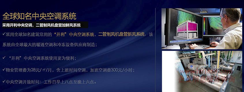 采用全球知名建筑常用的“開利”中央空調系統(tǒng),二管制風機盤管新風系統(tǒng),該 系統(tǒng)由全球最大的暖通空調和冷凍設備供應商制造;“開利”中央空調系統(tǒng)使用更為便利