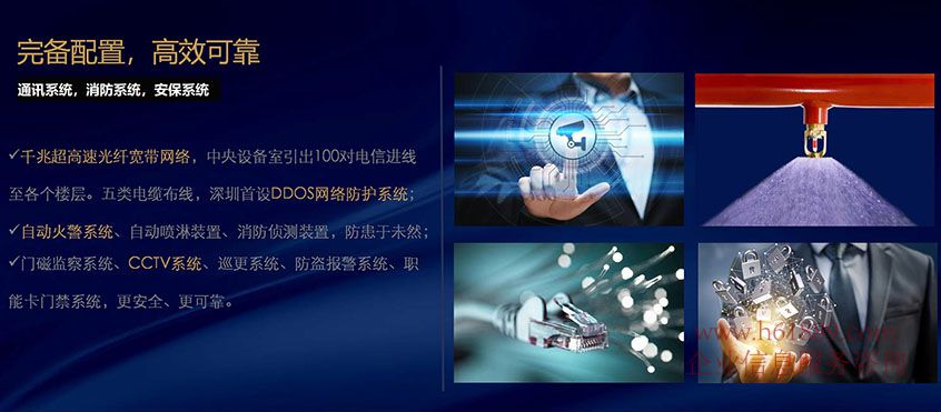 東海中心【東海國際中心】完備配置、高效可靠、通訊系統(tǒng),消防系統(tǒng),安保系統(tǒng)、千兆超高速光纖寬帶網絡,中央設備室引出100對電信進線至各個樓層。五類電纜布線,深圳首設DDOS網絡防護系統(tǒng)