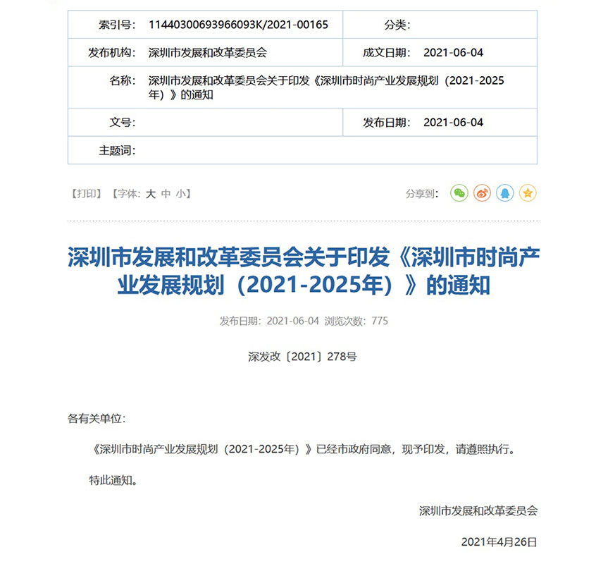 名稱:深圳市發(fā)展和改革委員會關(guān)于印發(fā)《深圳市時尚產(chǎn)業(yè)發(fā)展規(guī)劃(2021-2025年)》的通知