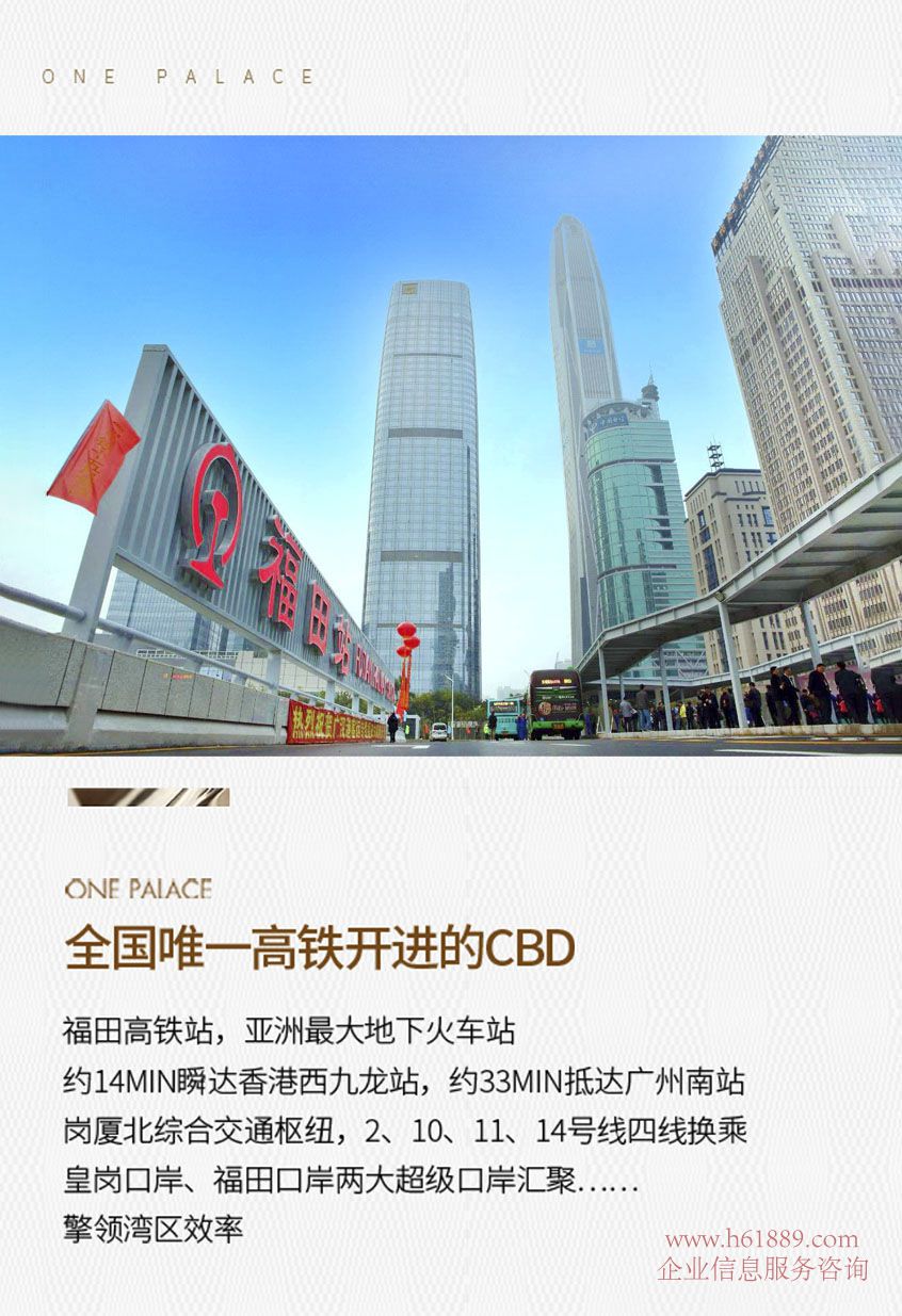 全國唯一高鐵開進的CBD、福田高鐵站、亞洲最大地下火車站、約:14MIN瞬達香港西九龍站,約33MIN抵達廣州南站崗廈北綜合交通樞紐、2、10、11、14號線四線換乘皇崗口岸、福田口岸兩大超級口岸匯聚......擎領(lǐng)灣區(qū)效率