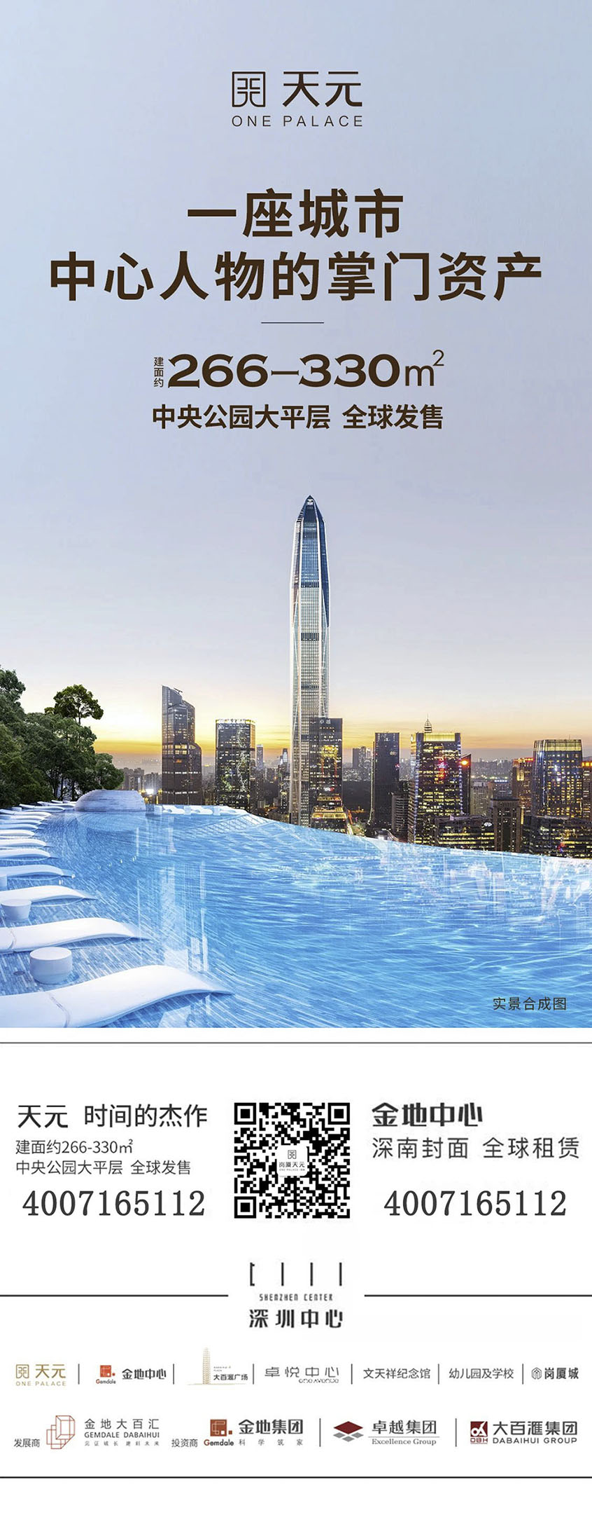 深圳中心天元 一座城市 中心人物的掌門資產(chǎn) 266平米--330平米 中央公園大平層 全球租售