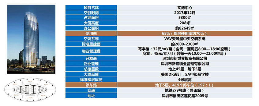 項目位于深圳市福田區(qū)新洲路與蓮花路交叉處,地上45層、地下5層;標(biāo)準(zhǔn)層面積2000㎡左右;由美國DK設(shè)計,5A甲級寫字樓;國際一級資管物業(yè)