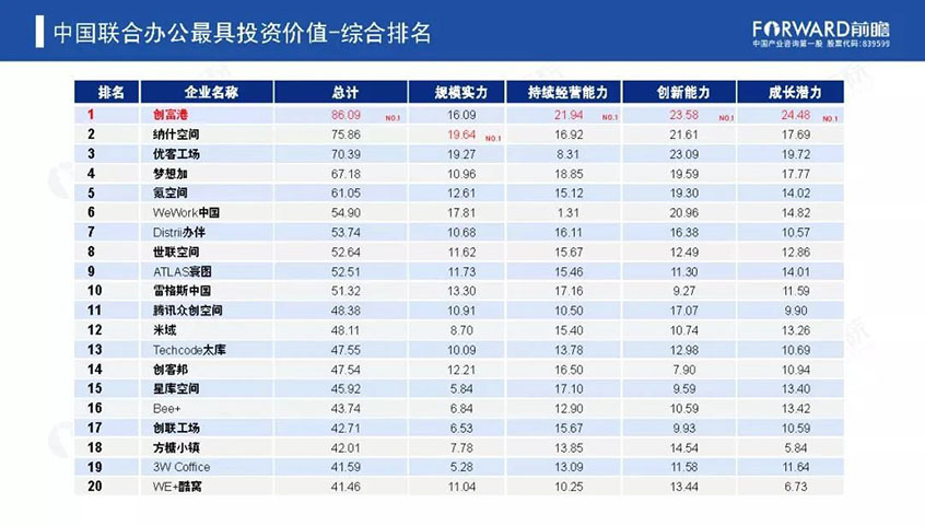 在《2020年中國聯(lián)合辦公最具投資價值企業(yè)榜單》中創(chuàng)富港榮獲第一,被行業(yè)內(nèi)專業(yè)機構(gòu)認定為國內(nèi)最具有投資價值的聯(lián)合辦公企業(yè),為創(chuàng)富港在行業(yè)內(nèi)精細鉆研多年給予了大力的肯定