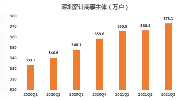 此外,今年前三季度深圳商事主體登記再次交出亮眼成績單。1至9月,全市新登記商事主體379451戶,其中企業(yè)245724戶,個體戶133727戶;全市商事主體總量達到373.1萬戶,繼續(xù)保持全國大中城市首位。商事主體的數(shù)量反應了一座城市的魅力所在