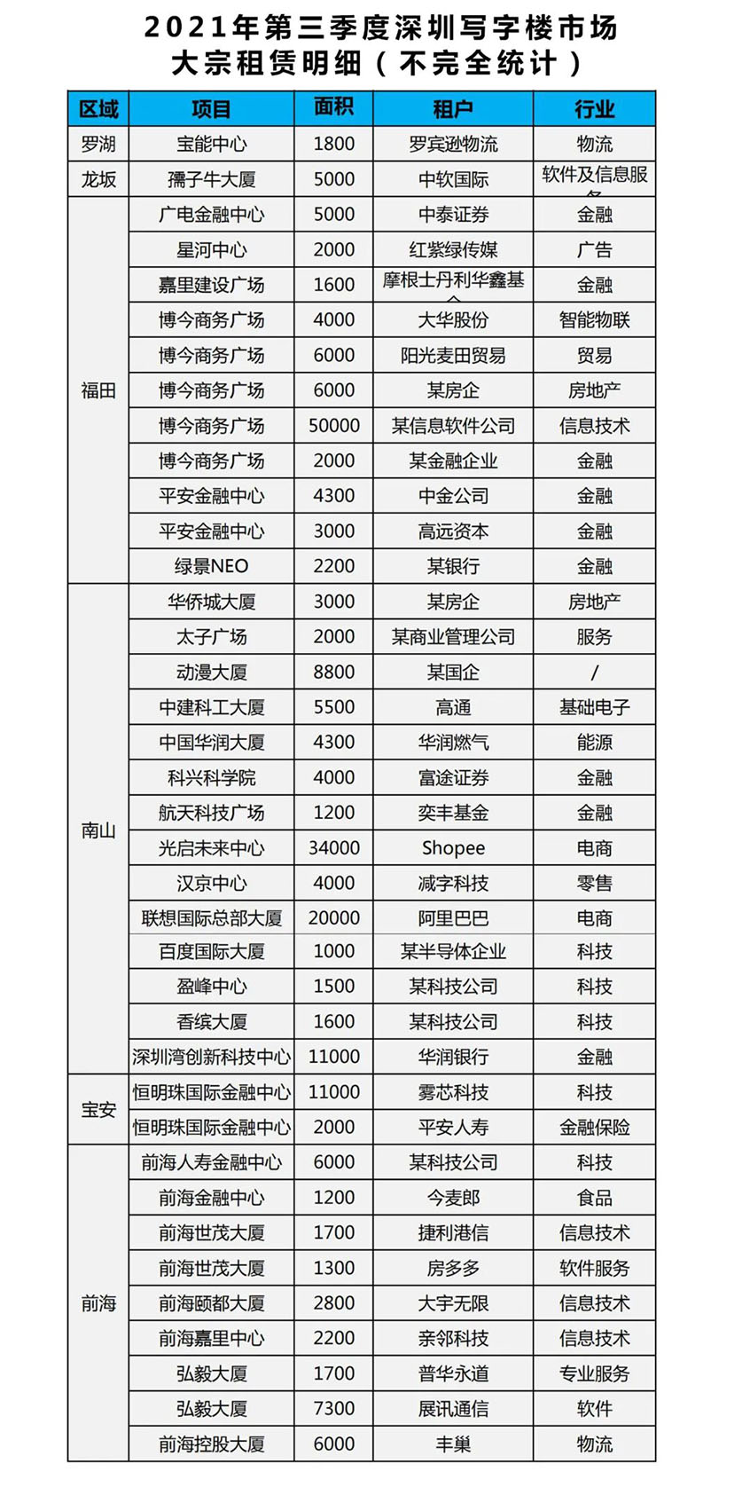 深圳的城市產(chǎn)業(yè)結(jié)構(gòu)已經(jīng)向中高端邁進,營商環(huán)境中的顯性成本,如租金等不會再具有明顯的優(yōu)勢。但是,深圳的隱性成本,比如更簡化的辦事程序、更優(yōu)質(zhì)的政務(wù)服務(wù)、更高的法治水平與市場環(huán)境,成功對沖了顯性成本的增長,最終做到了綜合成本最佳,從而吸引了這些企業(yè)的遷入深圳活躍的企業(yè),誕生超旺盛的辦公需求寫字樓,作為一個城市經(jīng)濟和企業(yè)活力的重要指標,更是將深圳經(jīng)濟的穩(wěn)健增長與十足的企業(yè)活力體現(xiàn)得淋漓盡致。得益于企業(yè)的數(shù)量增長及外地企業(yè)的進駐,第三季度,深圳甲級寫字樓吸納量達30.7萬㎡,創(chuàng)近年來單季度吸納量新高;甲級寫字樓平均租金也一改以往下降的趨勢,上升至207元/㎡?月,空置更是下降至22.3%,觸及近三年來低位水平。目前深圳辦公室租賃市場非常活躍,特別是大宗租賃深圳大宗租賃占全部租賃面積的6成,頭部企業(yè)非??春蒙钲冢季致潼c深圳現(xiàn)象非常明顯深圳租賃大客戶增多,成交面積達24萬㎡