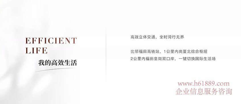 高效立體交通、全時灣行無界、比鄰福田高鐵站、1公里內(nèi)崗廈北綜合樞紐、2公里內(nèi)福田皇崗雙口岸、一鍵切換國際生活場