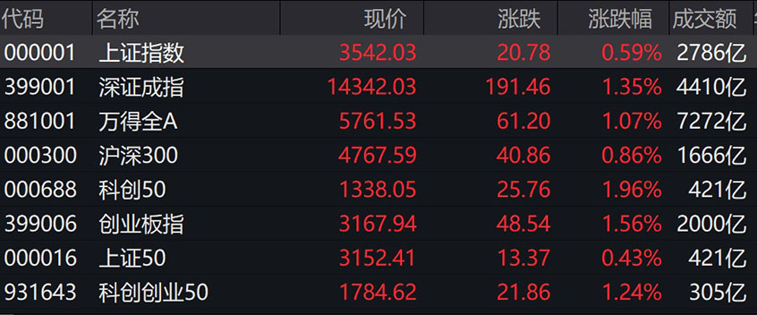 經(jīng)歷了上周的持續(xù)低迷后,1月17日早上,A股全線高開,其中,創(chuàng)業(yè)板指數(shù)開盤不久就漲超1%。截至中午收盤,上證指數(shù)漲0.59%,深證成指漲1.35%,創(chuàng)業(yè)板指漲1.56%,兩市個股普漲