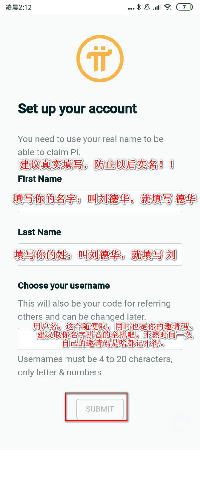 (5)填入邀請(qǐng)碼:13826550895,點(diǎn)擊SUBMIT、(可免費(fèi)獲取一個(gè)pi幣,3天后邀請(qǐng)你加入安全圈,挖礦速度翻倍)