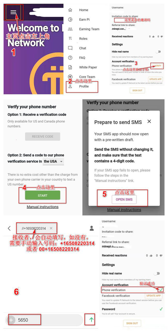 6、Pi network 需要驗(yàn)證手機(jī)號(hào)碼以證明是真實(shí)可用手機(jī)。驗(yàn)證手機(jī)號(hào)碼步驟如下