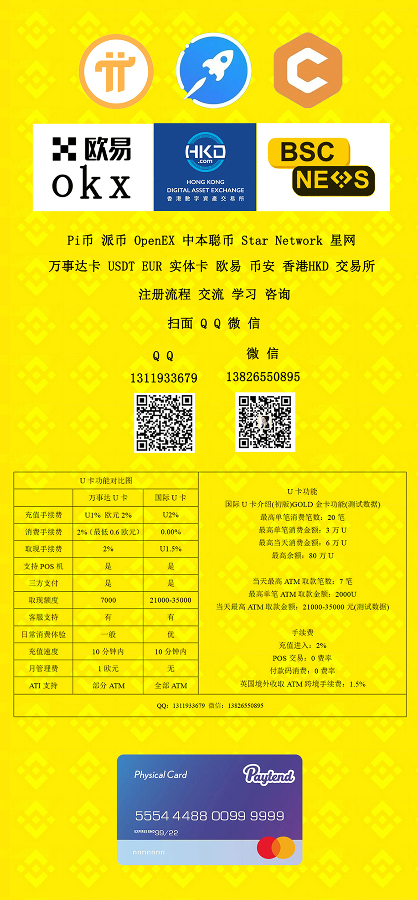 萬事達(dá)卡 USDT EUR 實體卡 歐易 幣安 香港HKD 交易所