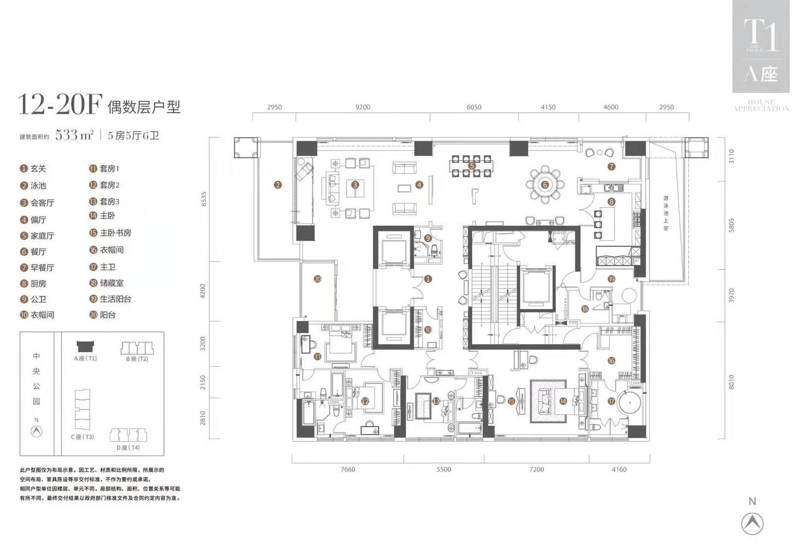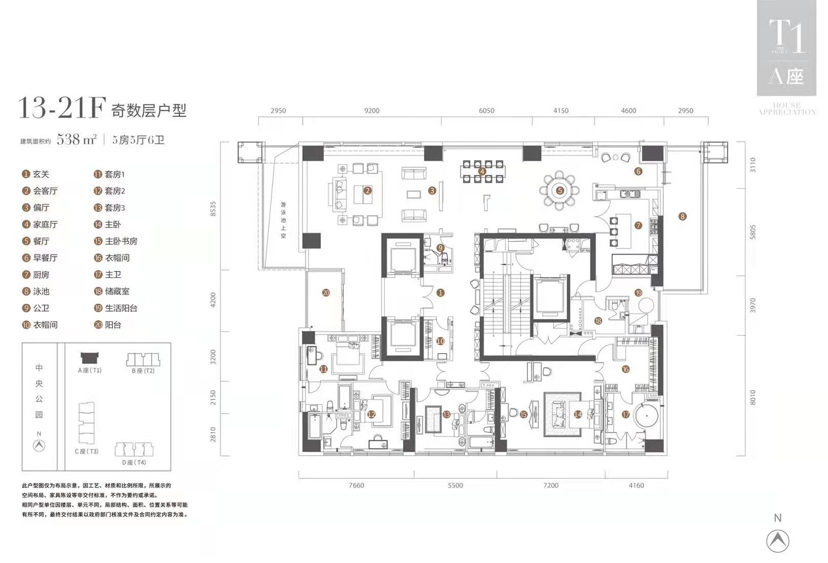 【1棟A座戶型鑒賞】538㎡5房5廳6衛(wèi)