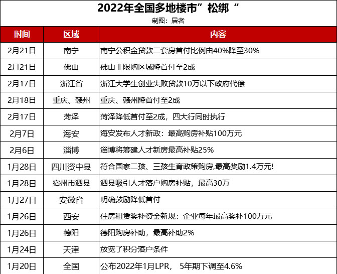 2022年以來,中國各地房地產(chǎn)相關(guān)利好政策頻出,主要以穩(wěn)定樓市為主,多著力在補貼、放寬公積金政策、因城施政、降首付、上調(diào)房貸額度等,如: