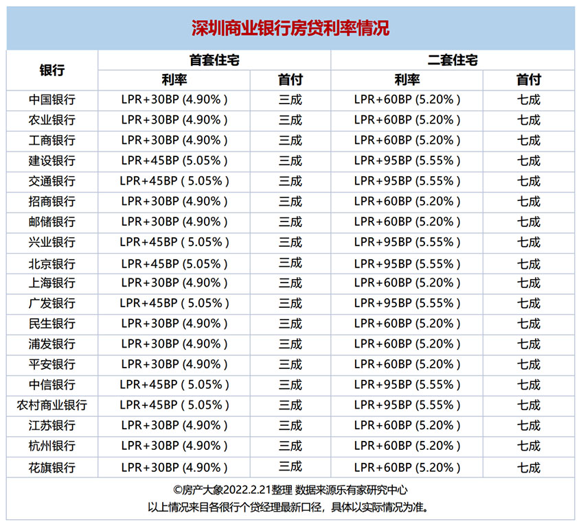 據(jù)市場消息,全國多個城市都出現(xiàn)了房貸利率下調(diào),深圳也是如此,各大行房貸利率2022年2月份出現(xiàn)下調(diào),首套利率下降15BP,二套利率下降35BP,放貸額度基本較為寬松