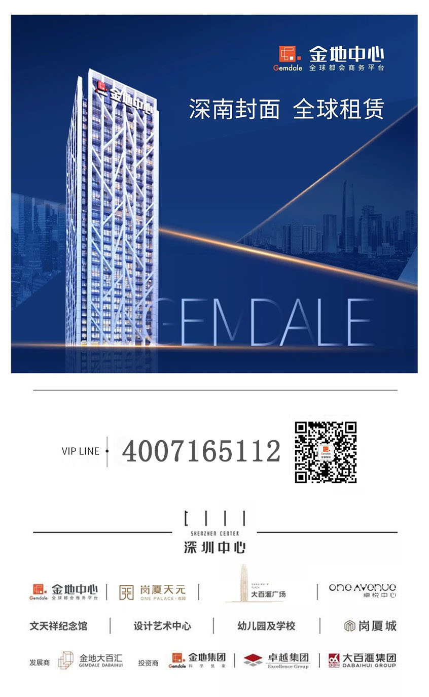 4、綜合體平臺(tái)金地中心屬于140萬平方米綜合體“深圳中心”的一部分,入駐企業(yè) 可享受全方位的綜合配套。(深圳中心綜合體還包含:21萬平方的豪宅“天元”、30 萬平方頂級(jí)商業(yè)“卓悅匯”、2000平方設(shè)計(jì)藝術(shù)中心、2萬平方CEO俱樂部)