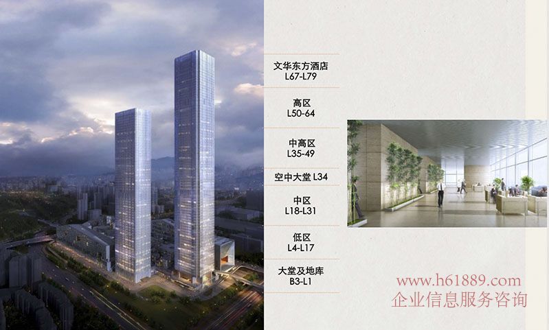 建筑樓層:T1棟:地上79層, T2棟:地上61層,地下3層