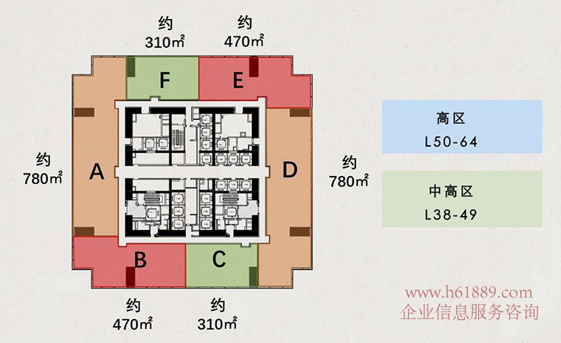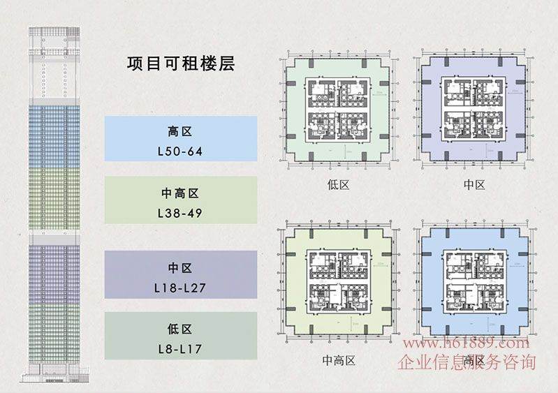 出租樓層:T1棟,7--64層,T2棟,47--54層,