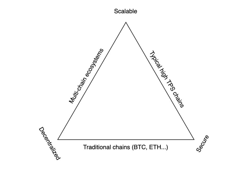 介紹區(qū)塊鏈三難是學(xué)術(shù)界和市場(chǎng)參與者都研究得很好的問題。它指出,所有加密貨幣,包括比特幣、以太等。必須在最佳安全性、可擴(kuò)展性和去中心化之間做出權(quán)衡,通常以犧牲第三個(gè)元素為代價(jià)來確定兩個(gè)元素的優(yōu)先級(jí),如圖1所示,