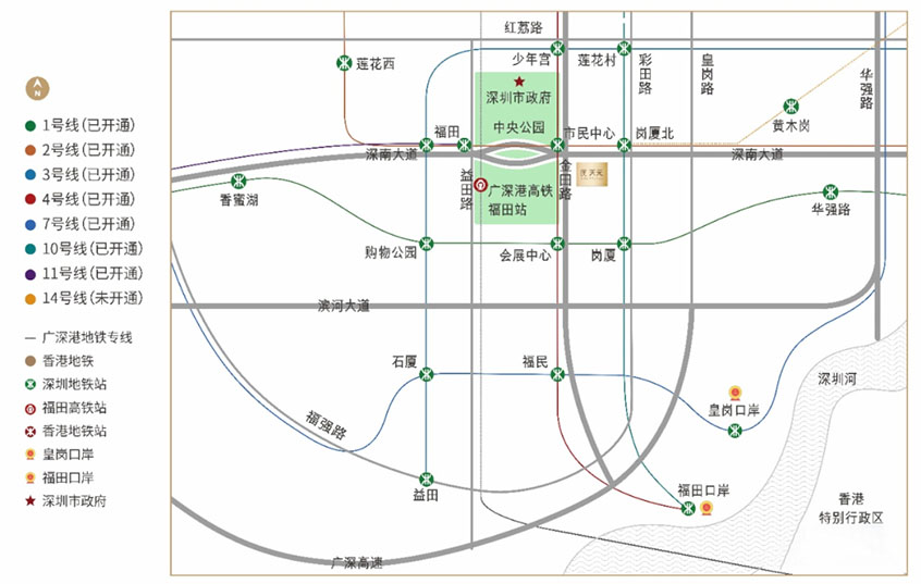 還有崗廈北交通樞紐(今年底開通)、福田與皇崗雙口岸,以及8條地鐵線、近50個公交站點等,依托完善交通配套,約40分鐘通達(dá)深圳所有重點區(qū)域,滿足中心掌門人物對高效、便捷的苛刻要求