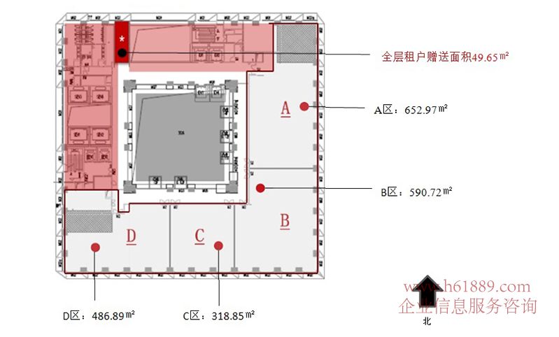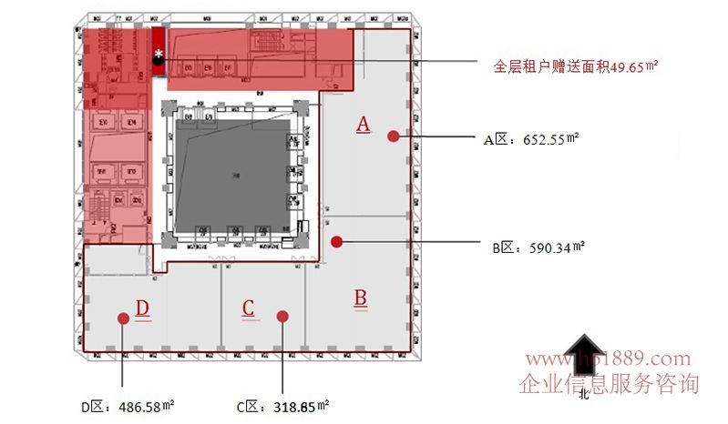 租賃面積:215平米、311平米、473平米、598平米、652平米、885平米、122平米、整層面積:2100平米、面積任組合