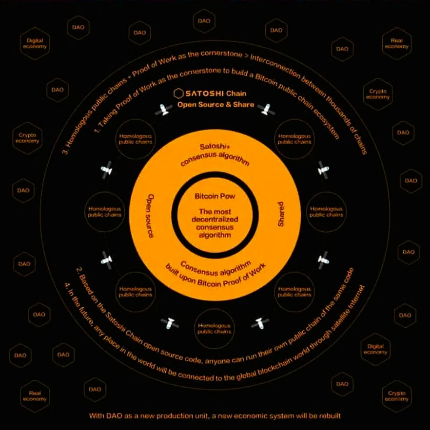 四、中本聰公鏈的基礎(chǔ)是通過SATOSH+共識(shí)算法連接比特幣的PoW共識(shí)算法,這樣世界只需要一組PoW就可以運(yùn)行一切,中本聰將成為未來去中心化貨幣系統(tǒng)、金融工程和自治組織的最佳底層基礎(chǔ)設(shè)施。