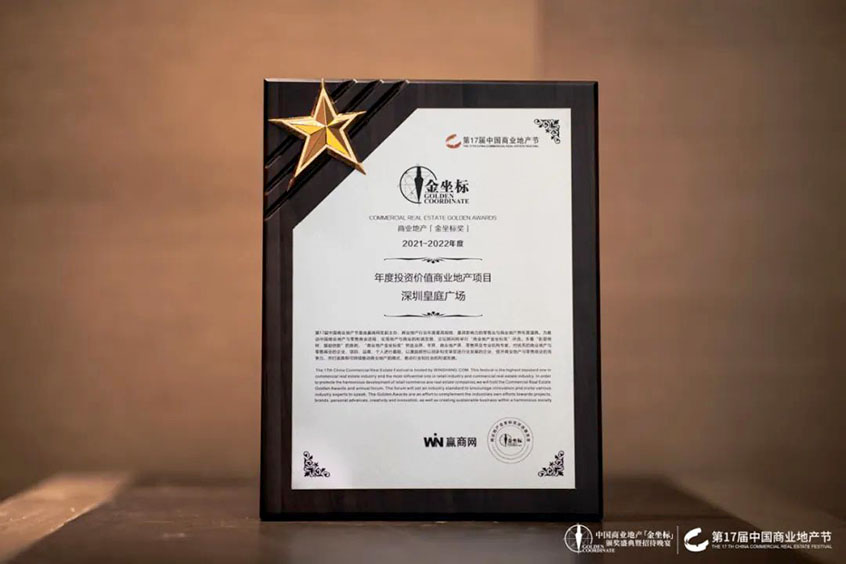 深圳皇庭廣場斬獲行業(yè)大獎(jiǎng)!榮獲贏商網(wǎng)“年度投資價(jià)值商業(yè)地產(chǎn)項(xiàng)目”