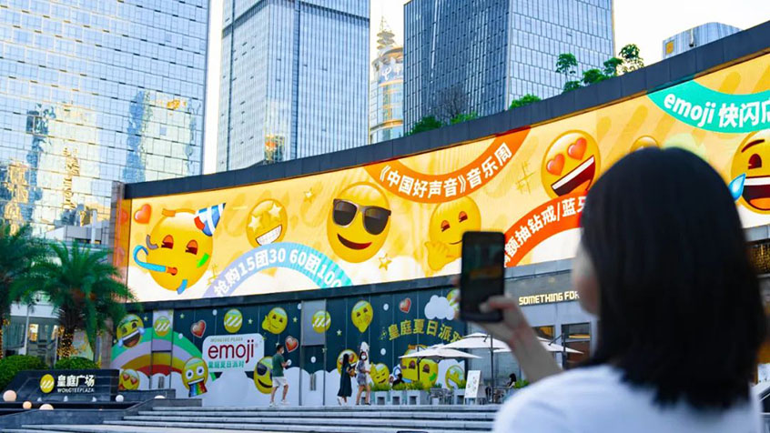 “emoji”ip引領(lǐng)深圳打卡風(fēng)潮:借力emoji童趣、年輕、潮流化屬性,皇庭廣場7月與“emoji”ip展開深度聯(lián)結(jié),多元化打造互動(dòng)場景,各個(gè)極具熱度的打卡點(diǎn)位及限量周邊,備受年輕客群的喜愛