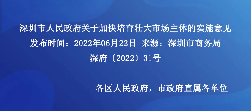 深圳市人民政府關(guān)于加快培育壯大市場(chǎng)主體的實(shí)施意見