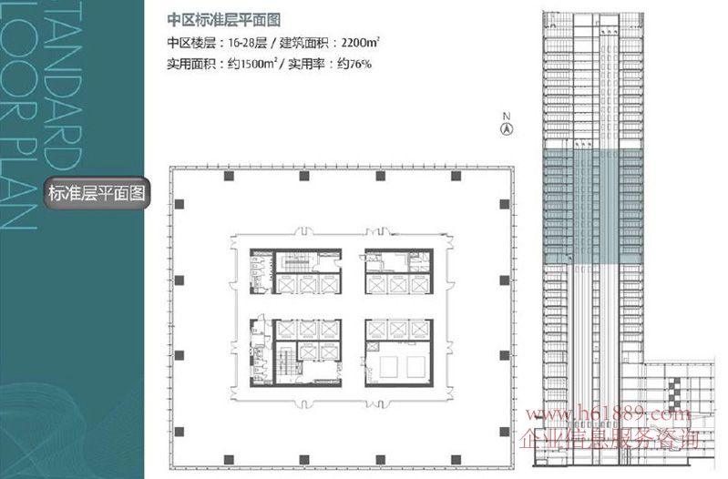 中區(qū):16F~28F 客梯數(shù)量:6臺 約2148㎡/層