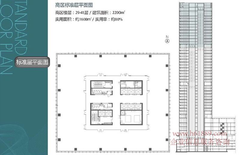 高區(qū):29F~41F 客梯數(shù)量:6臺 約2200㎡/層