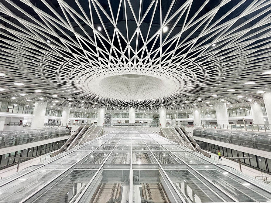 為打造國際一流的大型樞紐,首次采用無柱大跨鋼結(jié)構(gòu)的建筑,在樞紐核心區(qū)設(shè)計(jì)51.2米*48米中庭無柱大跨鋼結(jié)構(gòu),新建8個(gè)下沉廣場,建立地下空間與周邊城市空間有機(jī)融合,構(gòu)建和諧的“生態(tài)鏈”,致力于打造城市生態(tài)綠地名片
