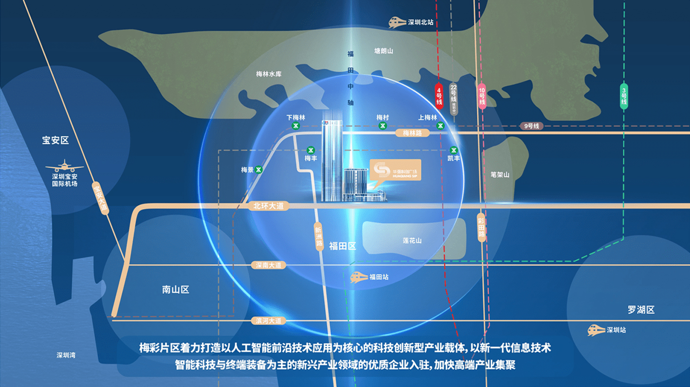 梅彩片區(qū)著力打造以人工智能前沿技術(shù)應(yīng)用為核心的科技創(chuàng)新型產(chǎn)業(yè)轉(zhuǎn)體、以新一代信息技術(shù)智能科技與終端裝備為主的新興產(chǎn)業(yè)領(lǐng)域的優(yōu)質(zhì)企業(yè)入駐、加快高端產(chǎn)業(yè)集聚筑谷引智、為推動科技創(chuàng)新高質(zhì)量發(fā)展,福田區(qū)出臺了“1+9+N”產(chǎn)業(yè)高質(zhì)量發(fā)展政策體系,大力優(yōu)化營商環(huán)境、“一核三帶一軸”戰(zhàn)略規(guī)劃,助力加快建成“世界級灣區(qū)現(xiàn)代產(chǎn)業(yè)引領(lǐng)區(qū)”;順應(yīng)“深圳智谷?梅彩中軸智慧城”總體目標(biāo),助力城市向上發(fā)展