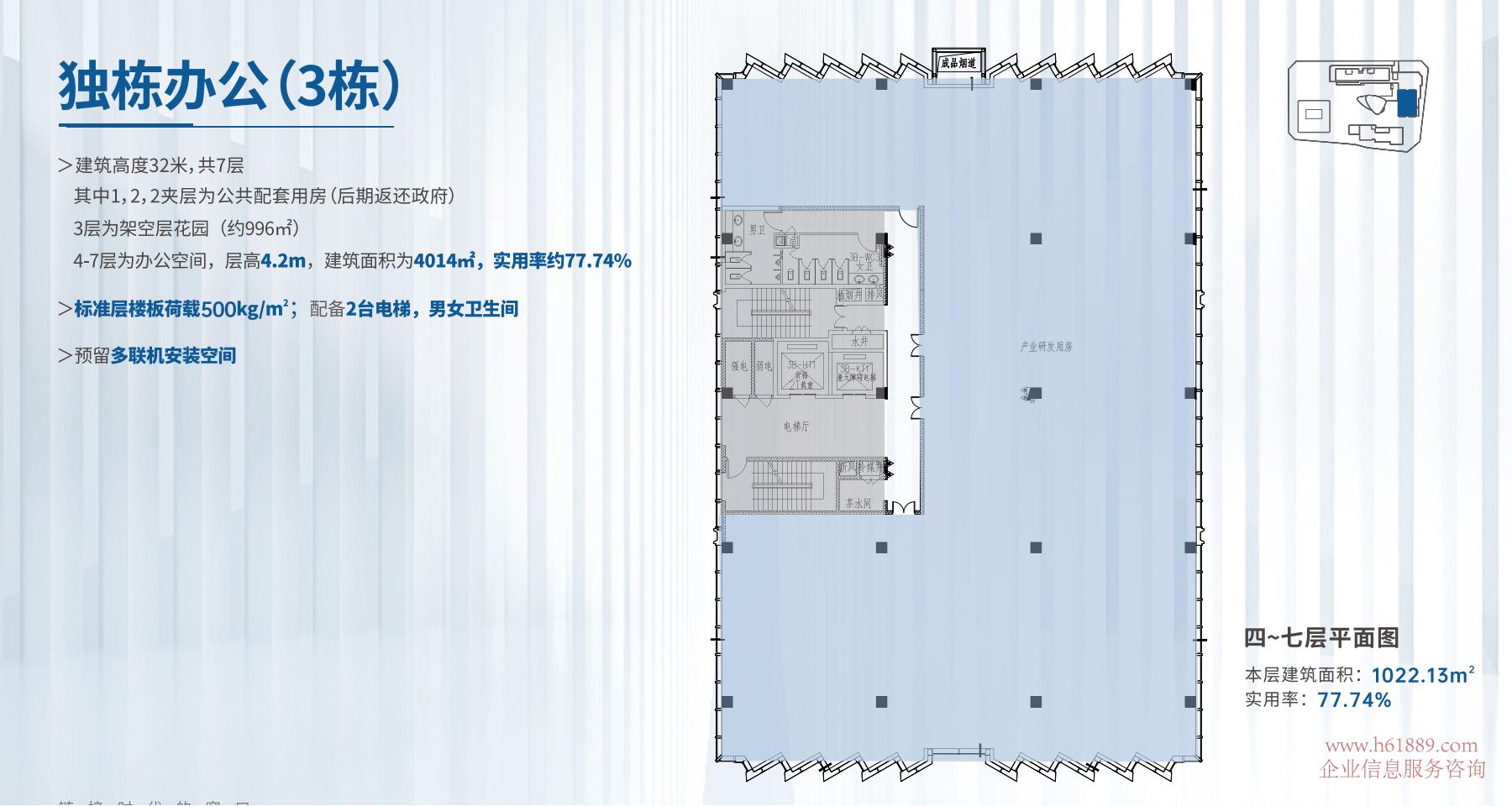 項目2棟及3棟設(shè)計為辦公獨棟,一企一棟,獨享不凡。每棟配置有1臺貨梯、1臺客梯,尊享從容企業(yè)效率。滿足企業(yè)大型設(shè)備布置需求,助力企業(yè)實現(xiàn)辦公、研發(fā)、生產(chǎn)一體化。2、3棟一層承重850kg/平,二層承重650kg/平,標(biāo)準(zhǔn)層承重500kg/平