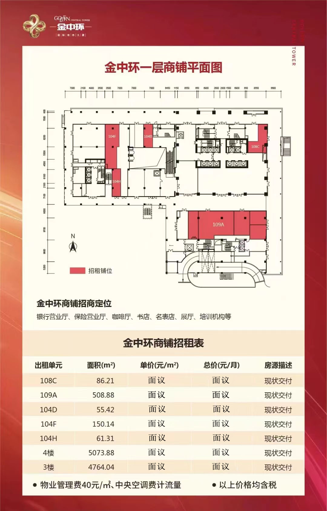 金中環(huán)商務(wù)大廈(金中環(huán)國際商務(wù)大廈)商鋪裙樓、醫(yī)療美容、休閑會所、展廳、培訓(xùn)機構(gòu)、出租