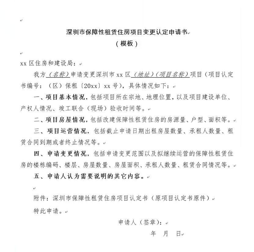 深圳市保障性租賃住房項(xiàng)目變更認(rèn)定申請書