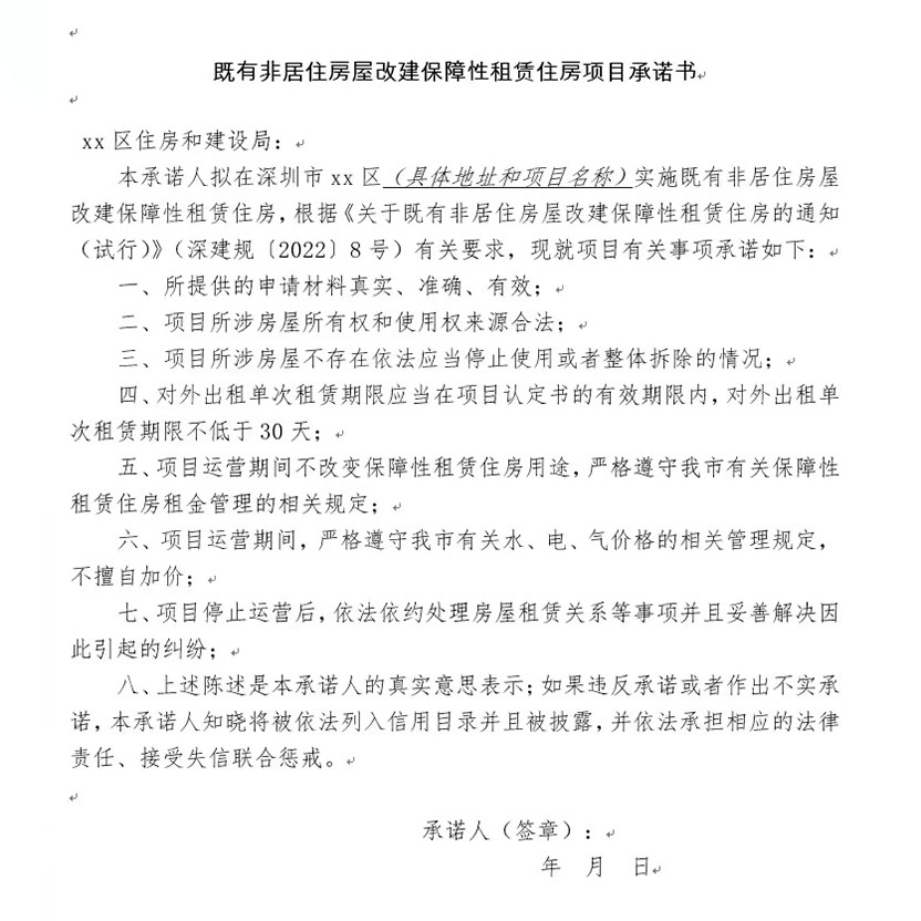 既有非居住房屋改建保障性租賃住房項(xiàng)目承諾書