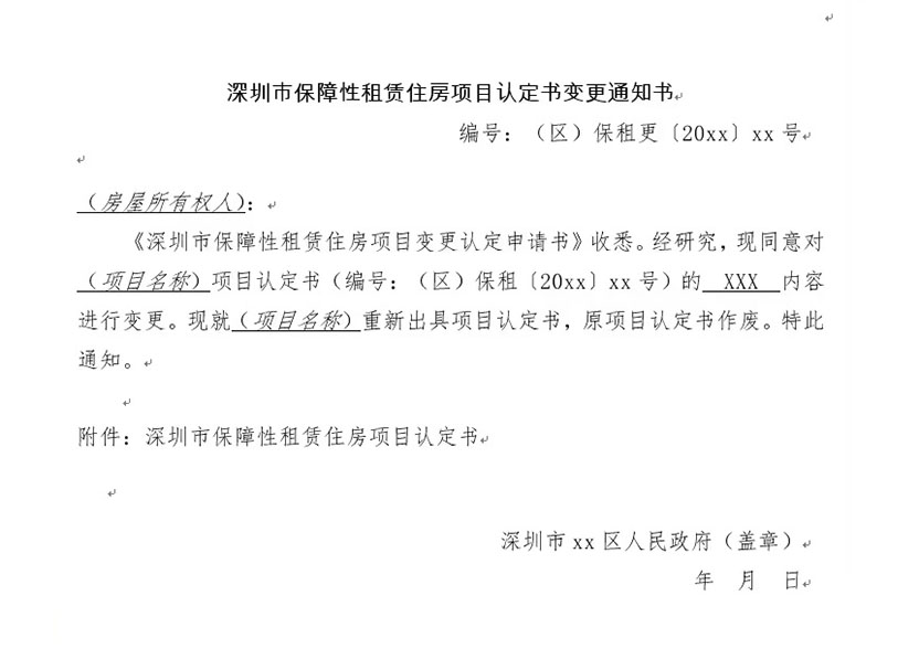 深圳市保障性租賃住房項(xiàng)目認(rèn)定書變更通知書