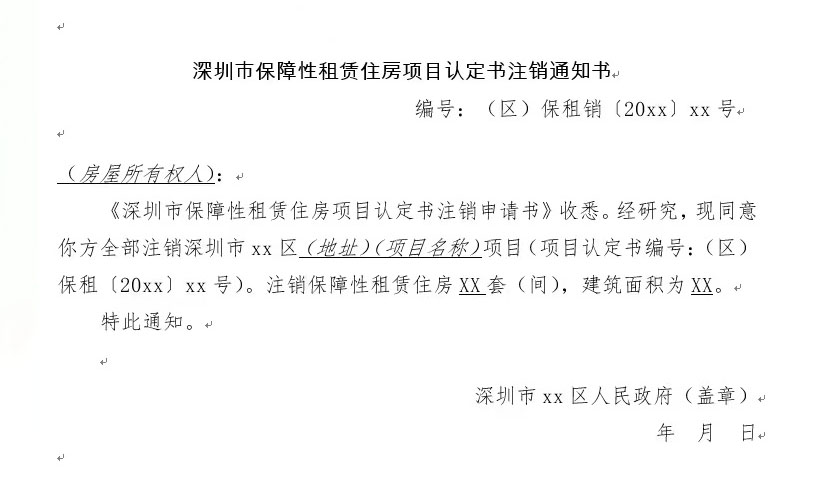 深圳市保障性租賃住房項(xiàng)目認(rèn)定書注銷通知書