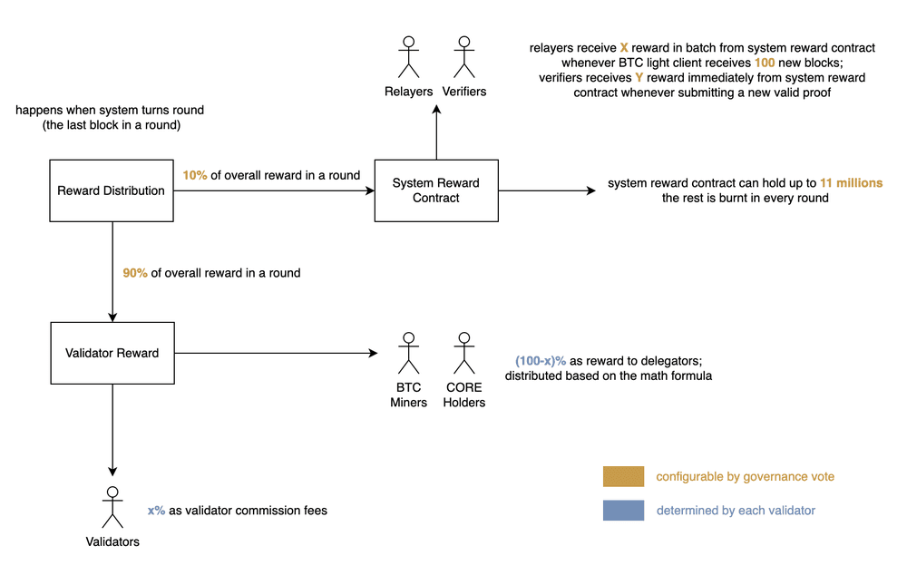 驗(yàn)證者通過努力確認(rèn)共識(shí)機(jī)制而獲得的獎(jiǎng)勵(lì)將分配回質(zhì)押的 $CORE 持有者、作為委托其持有的獎(jiǎng)勵(lì)。它基本上是借出你的 $CORE 用于促進(jìn)鏈的共識(shí)機(jī)制的獎(jiǎng)勵(lì)