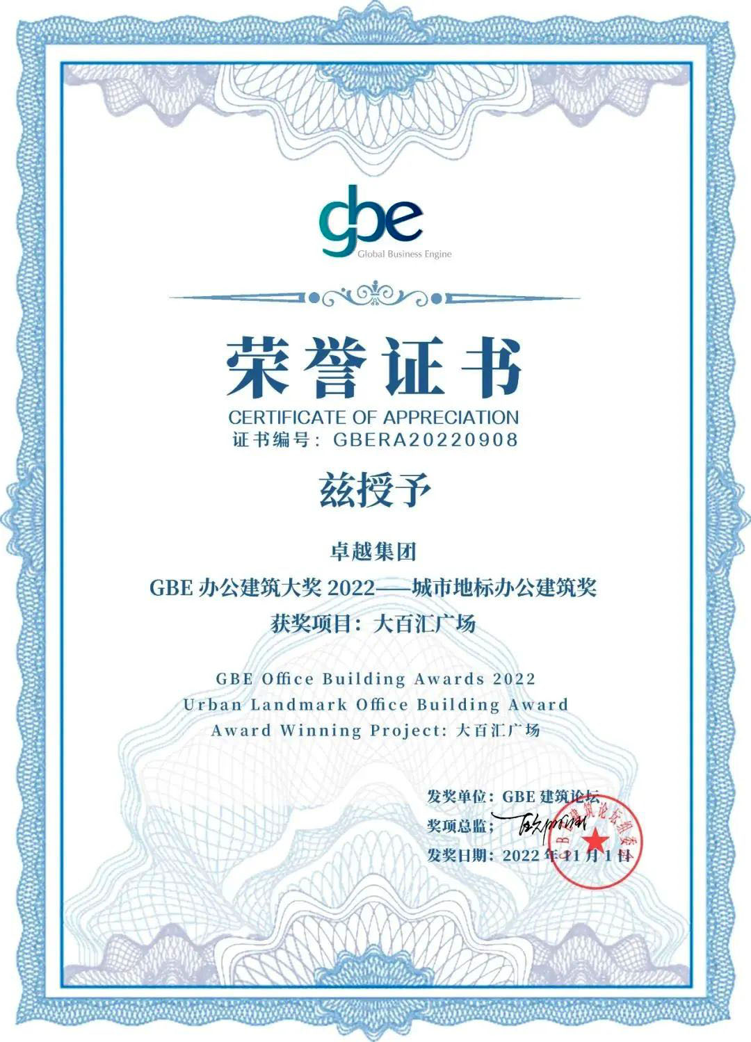 GBE(Global Business Engine)是亞太地區(qū)最具權威的建筑研究機構之一、GBE建筑大獎全面覆蓋中國辦公、寫字樓行業(yè)、在業(yè)內極具權威,是各大辦公建筑夢想加冕的重磅殊榮之一