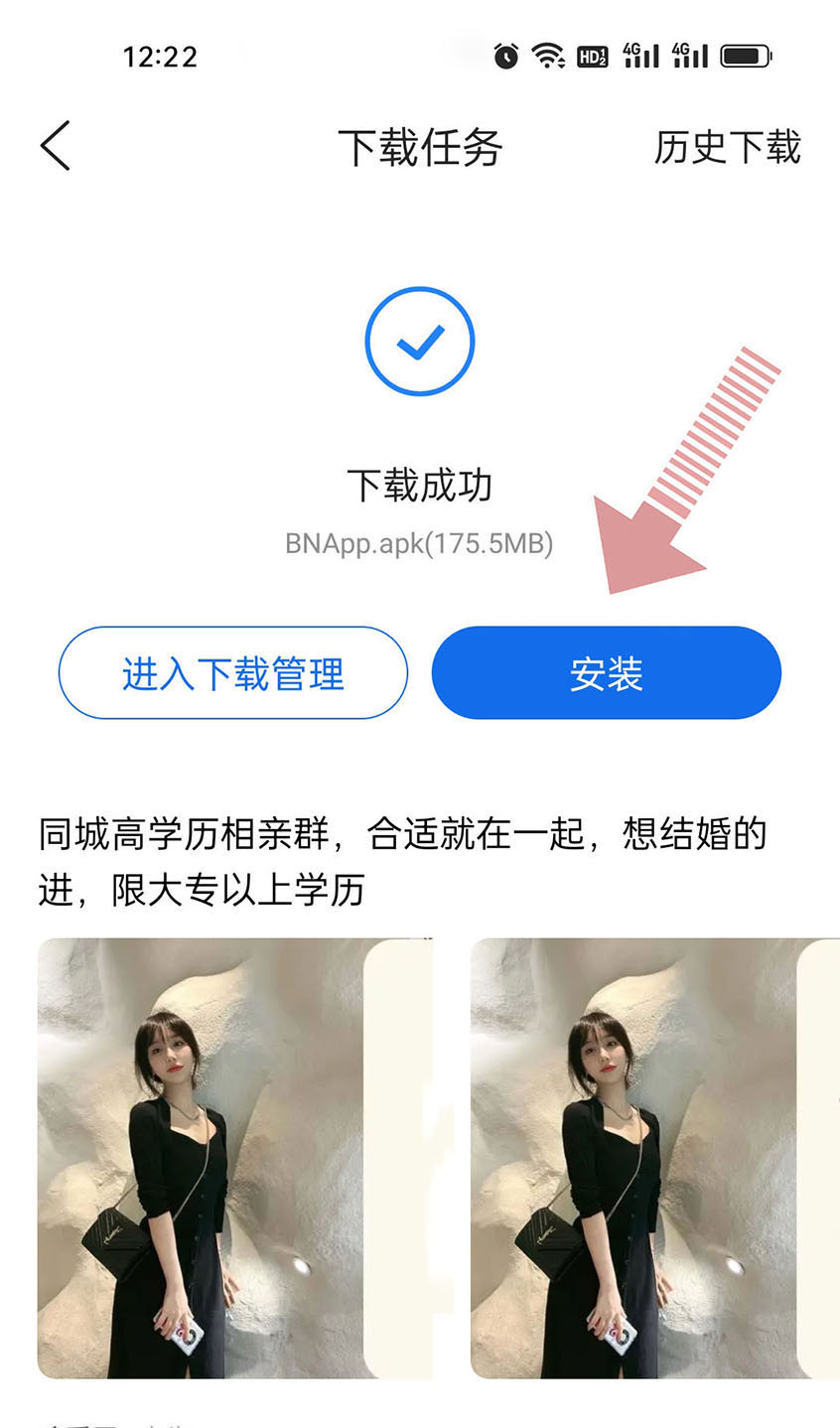下載成功 BNApp.apk 下載成功 點擊安裝
