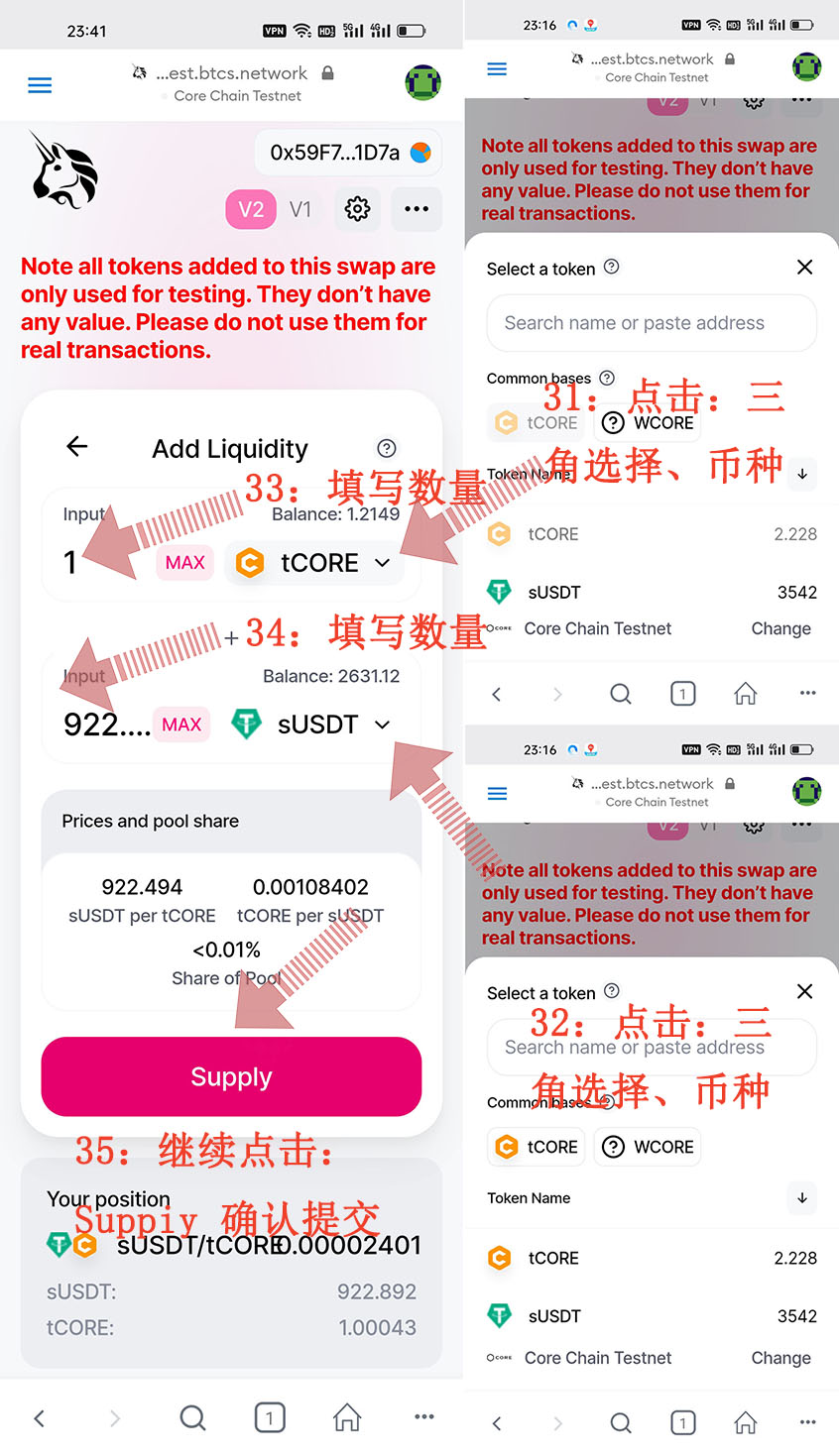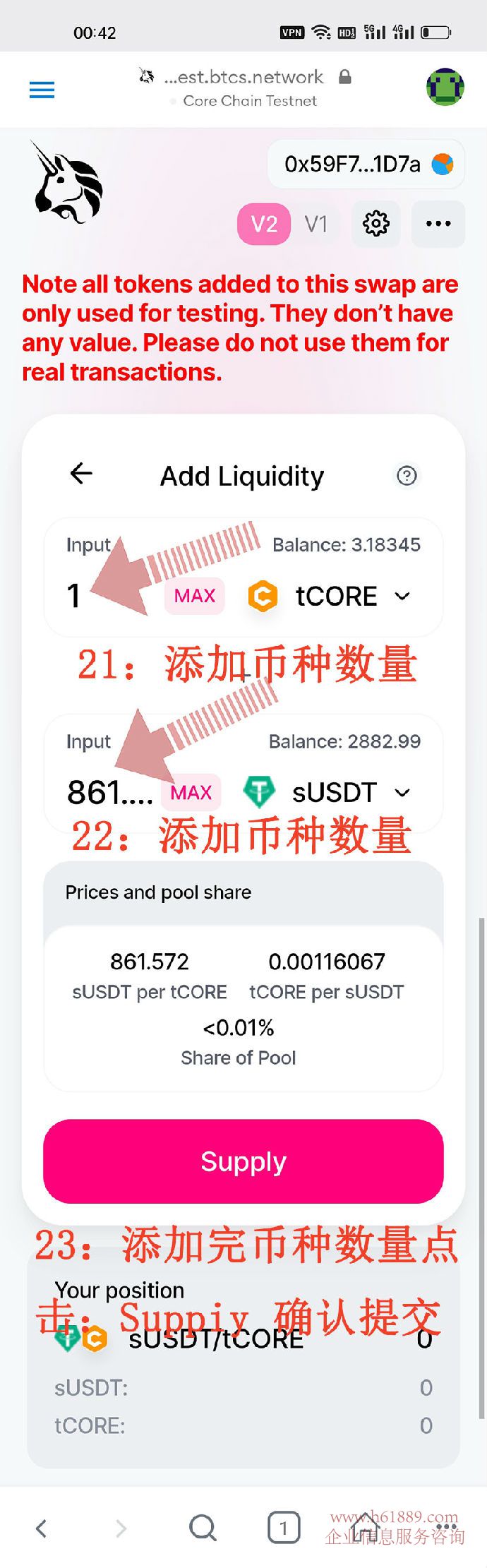 21:添加幣種數(shù)量、22:添加幣種數(shù)量、23:添加完幣種數(shù)量點(diǎn)擊:Suppiy 確認(rèn)提交