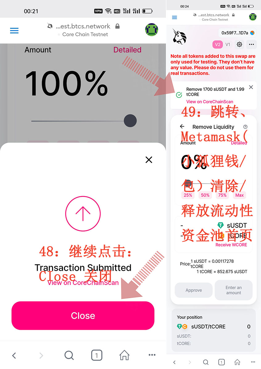 這就是CORE“酷爾幣”Metamask(小狐貍錢(qián)/包)怎么添加清除/釋放流動(dòng)性資金池的具體整個(gè)操作流程