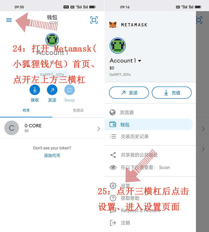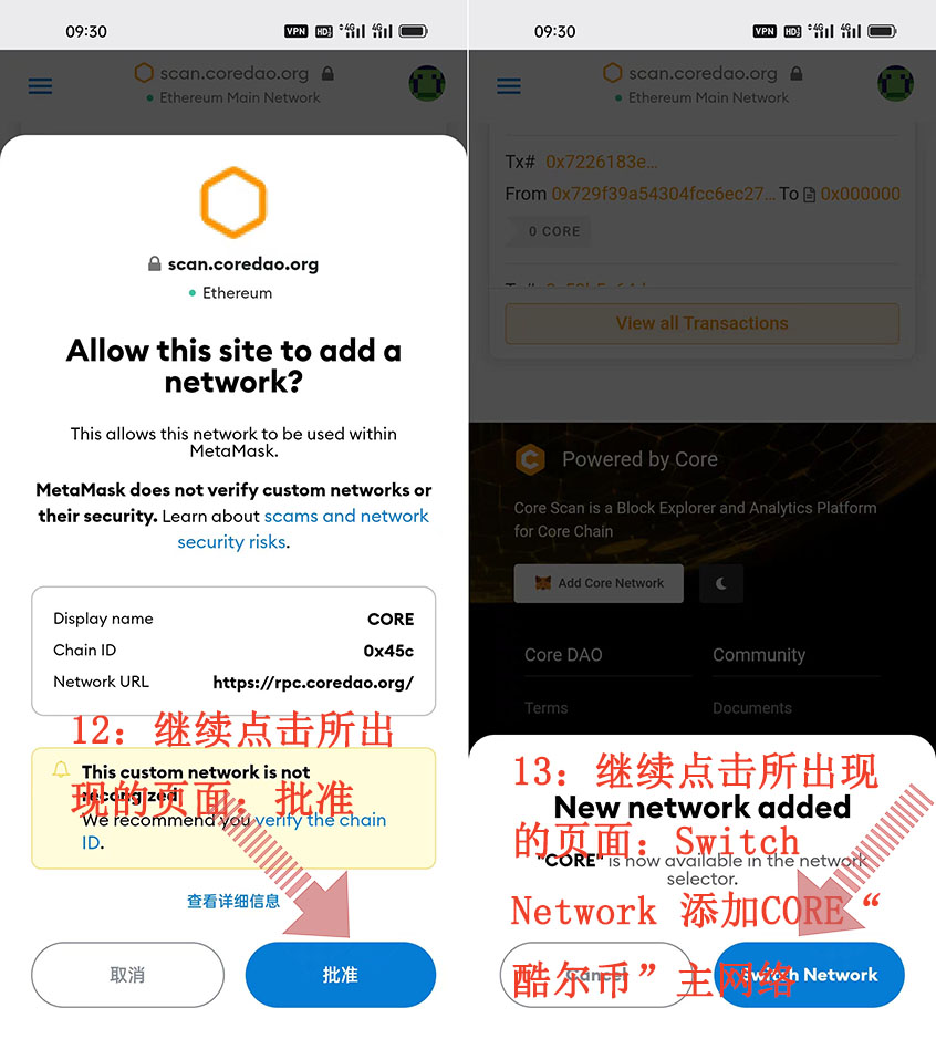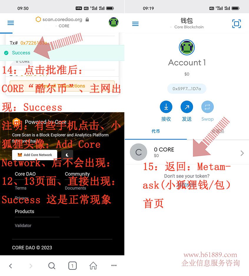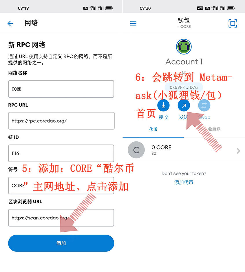 這就是CORE“酷爾幣”綁定 Metamask(小狐貍錢/包)方法 注意事項 具體整個操作流程