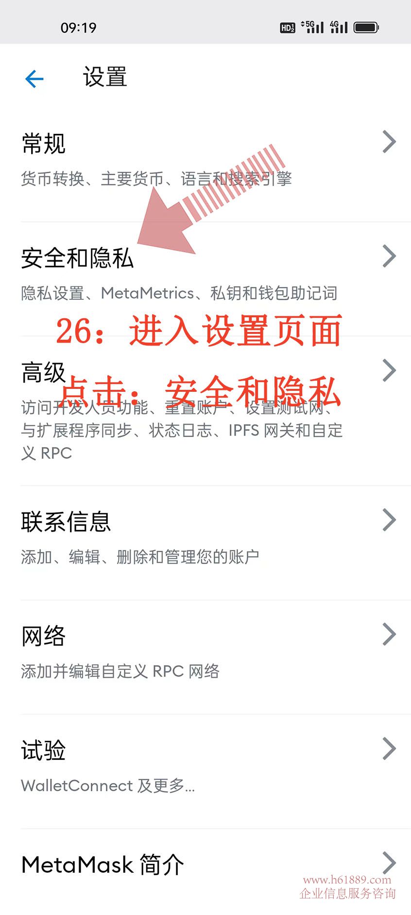 26:進(jìn)入設(shè)置頁面、點(diǎn)擊:安全和隱私