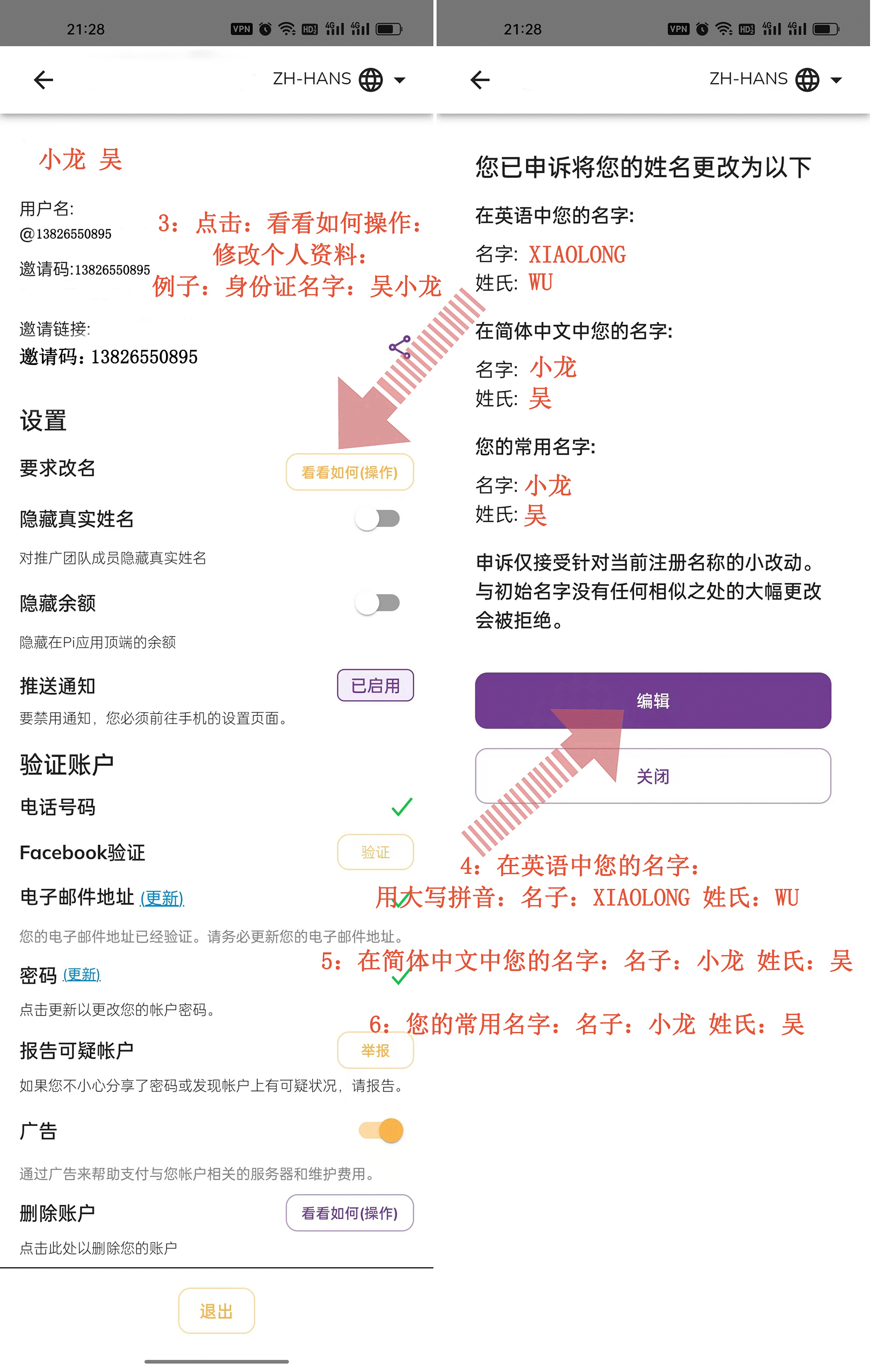 7:在English中您的名字:如同您的官方證件中所示名字:XIAOLONG :姓氏:WU