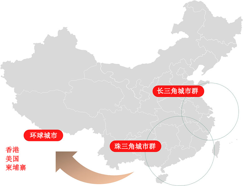 國際布局以香港為中心,發(fā)展香港、美國、柬埔寨等環(huán)球城市