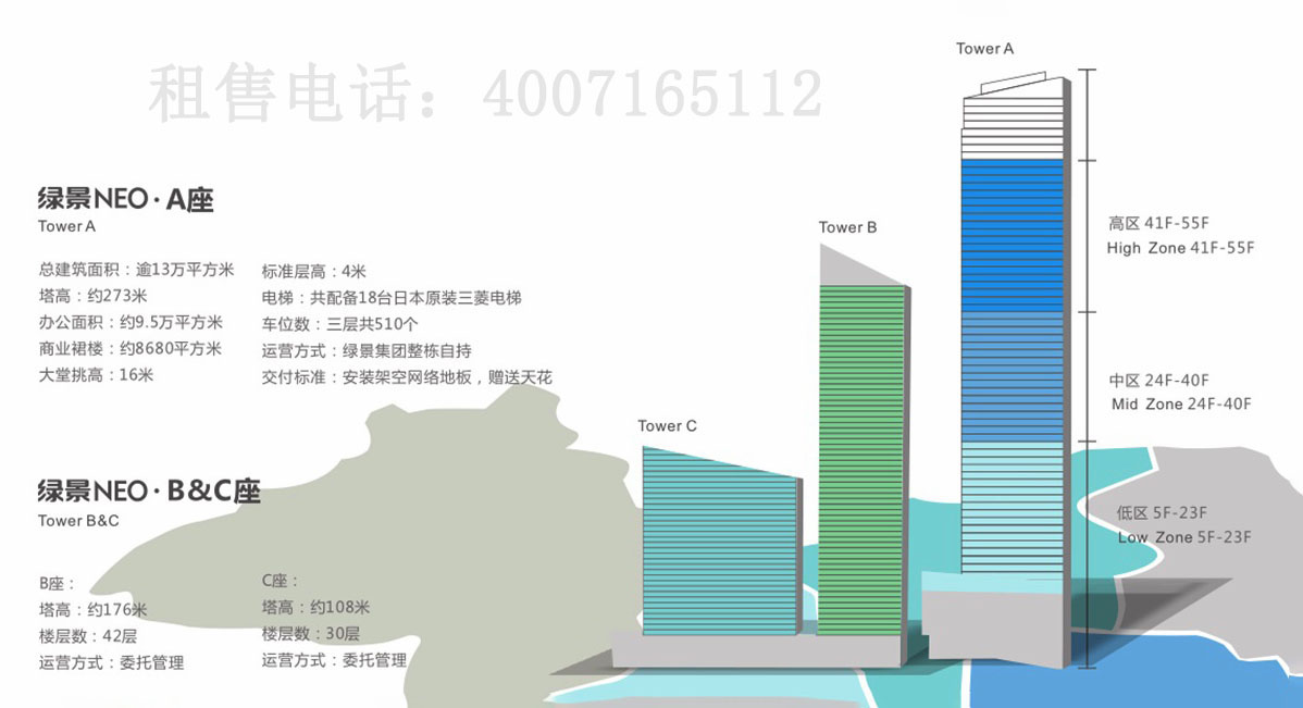 NEO英文縮寫為“New Enterprise Office”,又指“New Economic Opportunity”,為新型的當代企業(yè)而生,也寓意將助力客戶成為全新的經(jīng)濟力量基于行業(yè)趨勢和自身布局,通過梳理區(qū)域、客戶和產(chǎn)品的對應關系,綠景寫字樓產(chǎn)品打造以NEO為主導品牌的三條細分產(chǎn)品系列,從而匹配多元化市場上對超高端商務、標準甲級商務及創(chuàng)新型商務的不同需求,實現(xiàn)NEO品牌的多元化發(fā)展,為資產(chǎn)公司的快速發(fā)展提供穩(wěn)定現(xiàn)金流